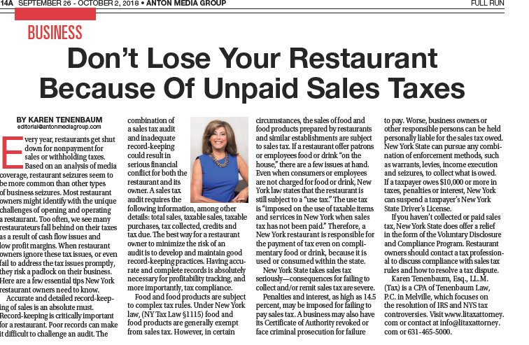Don’t Lose Your Restaurant Because of Unpaid Sales Taxes