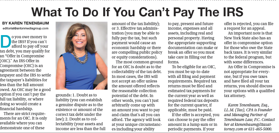 Our attorneys regularly publish articles on IRS and New York State tax law matters.