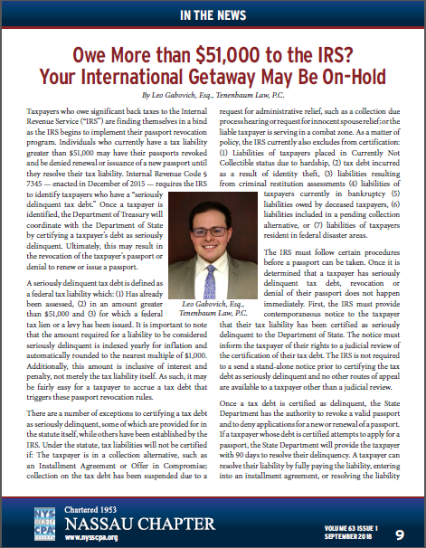 Published by: NYSSCPA, Nassau Chapter, Volume 632 Issue 1, Pages 9-10, September 2018.