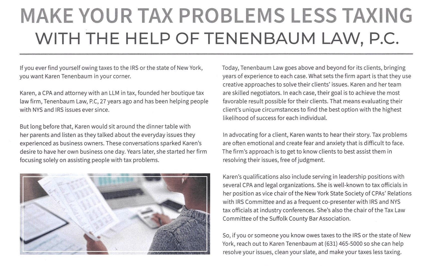 Make Your Tax Problems Less Taxing With The Help of Tenenbaum Law, P.C.
